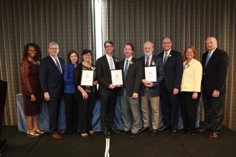 Representatives from ACGME and the Gold Foundation celebrate with representatives of the three 2020 Bud Baldwin winners: Cincinnati Children’s Hospital Medical Center of Cincinnati, Ohio; Schwab Rehabilitation Hospital of Chicago; and Utah Healthcare Institute – St. Mark’s Family Medicine of Salt Lake City, Utah.
