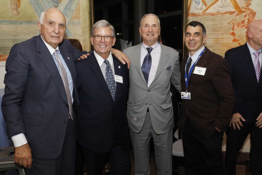 The Bellevue Association celebration of Dr. Lewis Goldfrank on Oct. 2, 2019, drew many former colleagues and NYU leaders.  Pictured here: NYU Langone Chairman of the Board Kenneth Langone, Gold Foundation President/CEO Dr. Richard I. Levin, NYU Langone Health CEO and NYU School of Medicine Dean Dr. Robert Grossman, and President/CEO of NYC Health + Hospitals Dr. Mitchell Katz.