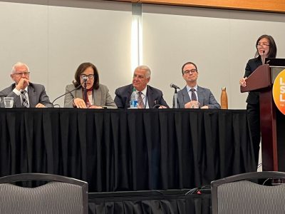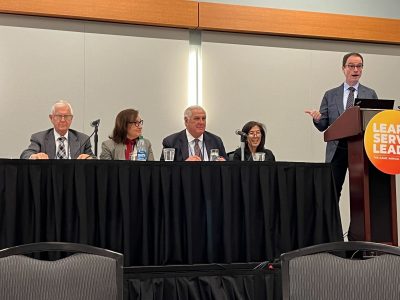 The panel, titled “A Conversation with Founding Deans – Embedding Humanism and Making it Stick,” included Dr. Pedro “Joe” Greer, Jr., Founding Dean of the College of Medicine at Roseman University and Gold Trustee; Dr. Annette C. Reboli, Dean of Cooper Medical School at Rowan University and Founding Vice Dean; and Dr. Lawrence Smith, Founding Dean and Dean Emeritus at Zucker School of Medicine at Hofstra/Northwell and Gold Trustee. Dr. Smith also presented this year’s Jordan J. Cohen Humanism in Medicine Lecture at the AAMC conference.
