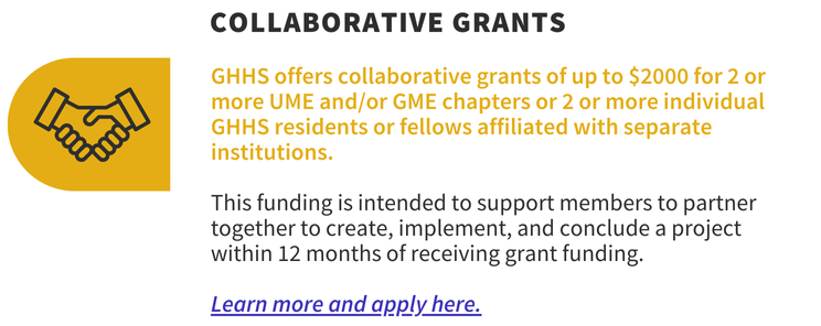 The Gold Humanism Honor Society is committed to supporting our chapters and members through a variety of grant opportunities tailored to foster growth, innovation, and collaboration. For detailed information about our diverse grant offerings and grant types, please explore the sections below.