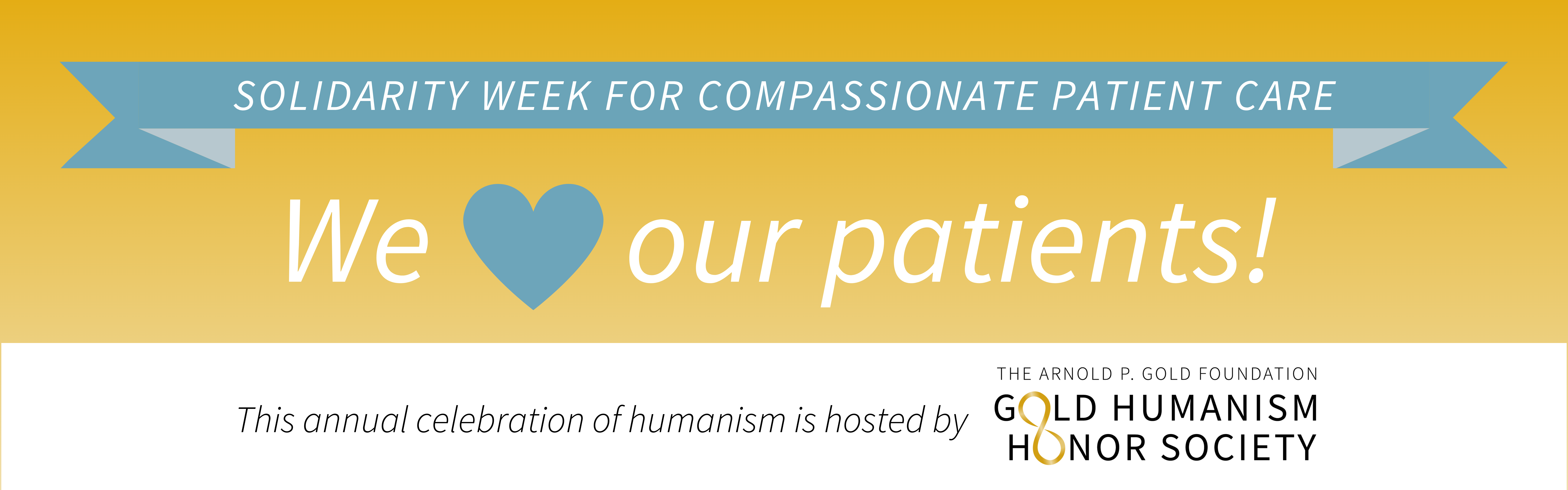 Gold Humanism Honor Society chapters, schools (medical, nursing, and other healthcare professions schools), hospitals and health systems, and patient care organizations are welcome to participate. During this week, we encourage you to celebrate by connecting with patients and thanking clinicians and healthcare team members for their kind, safe, trustworthy care.
