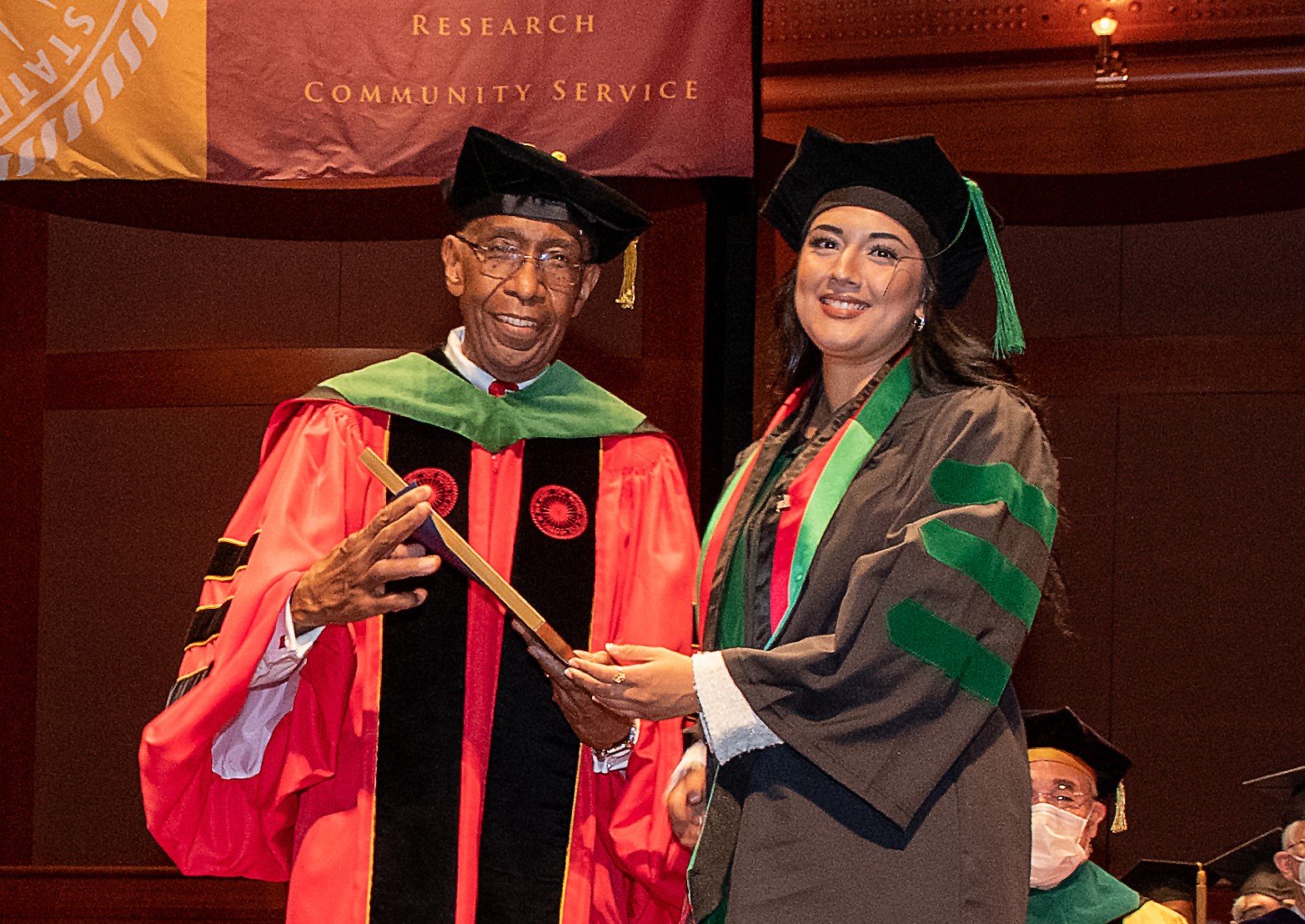 Zahra Bakhtiar crop Rutgers New Jersey Medical School-graduating student Zahra Bakhtiar receives the Tow Award from Dean Robert L. Johnson